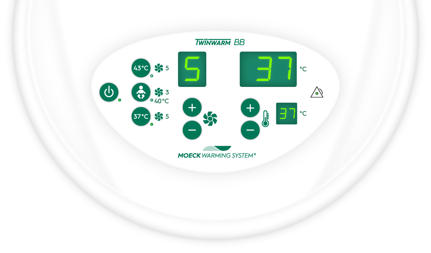 In combination with the warming blankets and warming mats of the MOECK WARMING SYSTEM®, its powerful performance helps maintain a contact surface temperature closely aligned with the patient’s normothermia – insofar as permitted by the specific treatment.